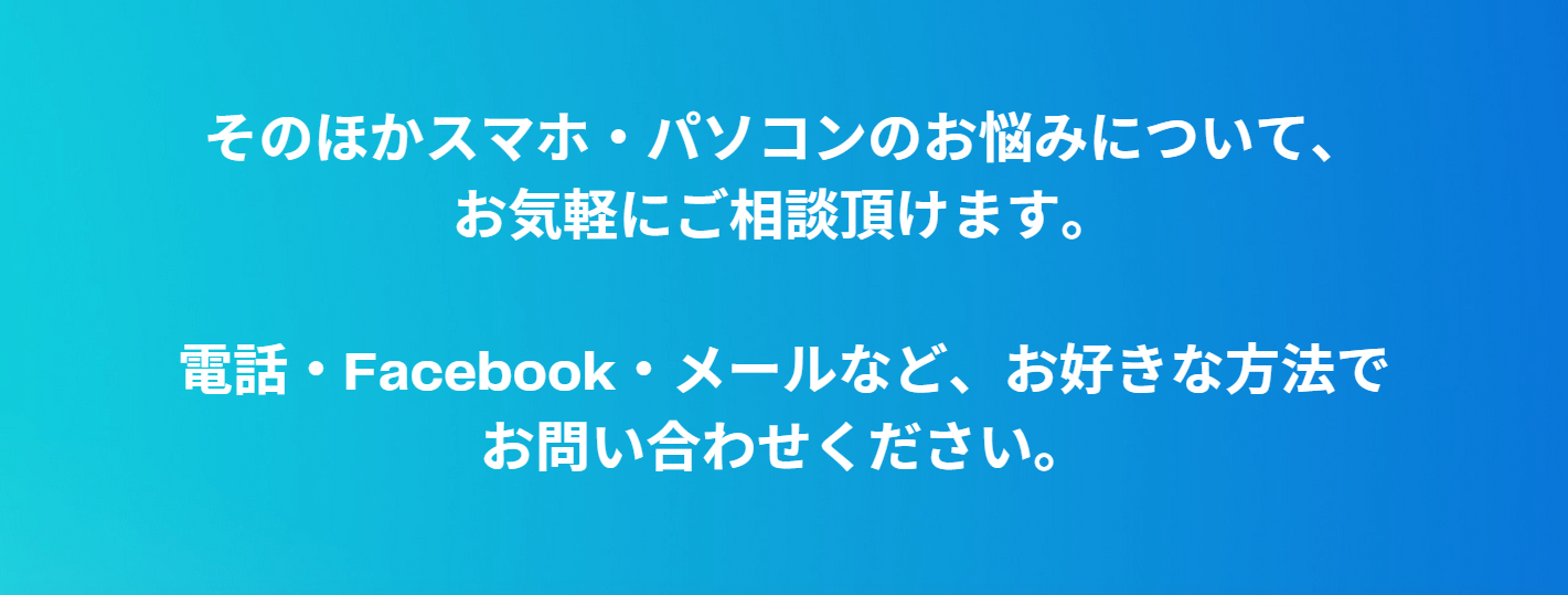 「スマホの決済方法が分からない」「インターネットの選び方が分からない」など、どんな些細なことでも遠慮なくご相談ください。